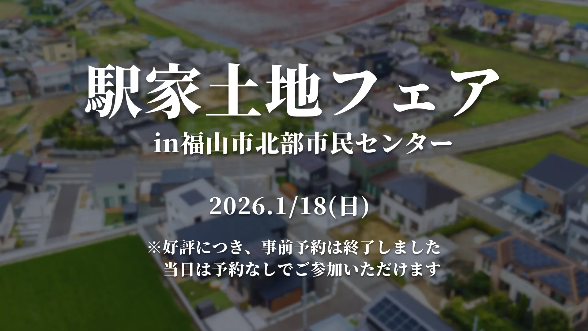 【一般予約受付終了】紹介可能土地300件以上 駅家土地フェア2026冬 開催 :終了 日時:2026年1月18日(日) 場所:福山市北部市民センター イベントをご覧いただきありがとうございます。 誠に残念ながら、こちらのイベントは終了いたしました。 現在受付中のイベントをこちらよりご確認ください。 イベント 特別企画